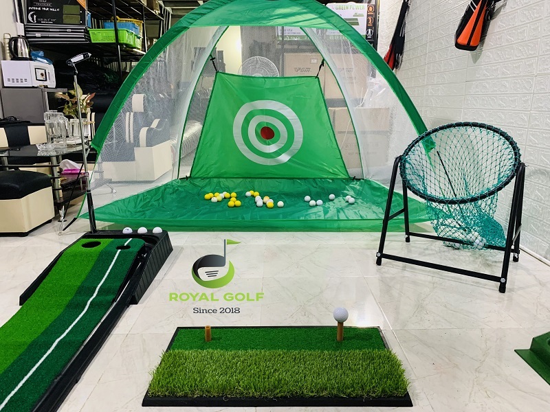 Combo Lồng Lều Lưới Tập Golf 2x1.4m + Thảm Putt Nhựa Đen + Giỏ Tập Chip+ Khay Bóng Nhựa và Thảm Swing 1.2x1.2m