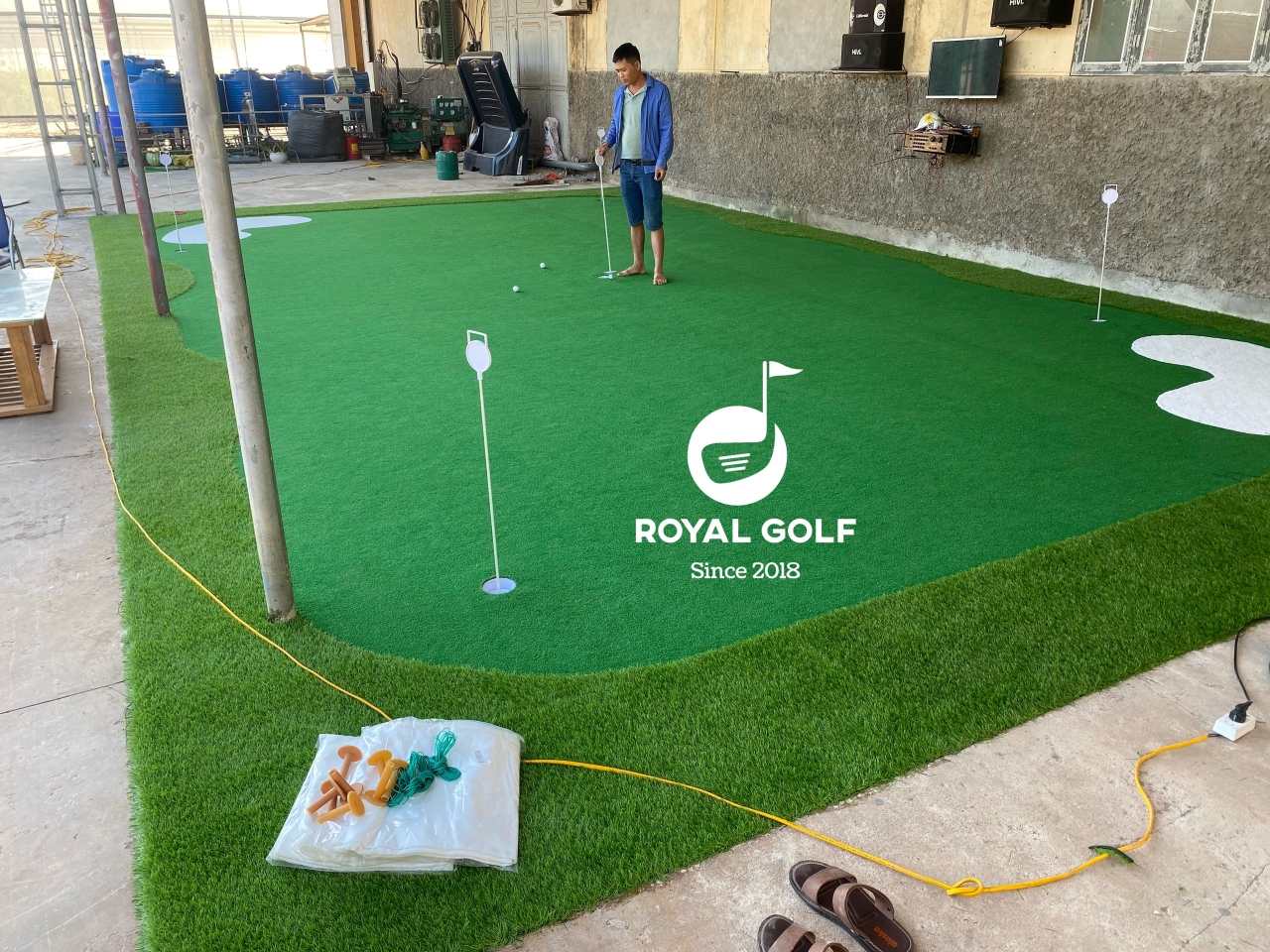 Anh Nhượng sống tại Quảng Ninh là một golfer lâu năm. Anh thường luyện tập golf sau giờ đi làm hay đi chơi golf với bạn bè những ngày nghỉ cuối tuần. Do công việc bận rộn nhiều lúc làm cho anh khó khăn trong việc luyện tập golf. Do vậy anh đã quyết định xây dự sân mini golf nhỏ tại nhà để việc luyện tập golf dễ dàng và thoải mái nhất giúp anh giảm thiểu việc đi lại tới các sân tập và cũng là một cách để tạo cảnh quan cho ngôi nhà của anh thêm xanh tươi đẹp mắt hơn. Anh Nhượng đã tin tưởng chọn Royal Golf làm nhà thầu chính cho sân mini golf của mình.